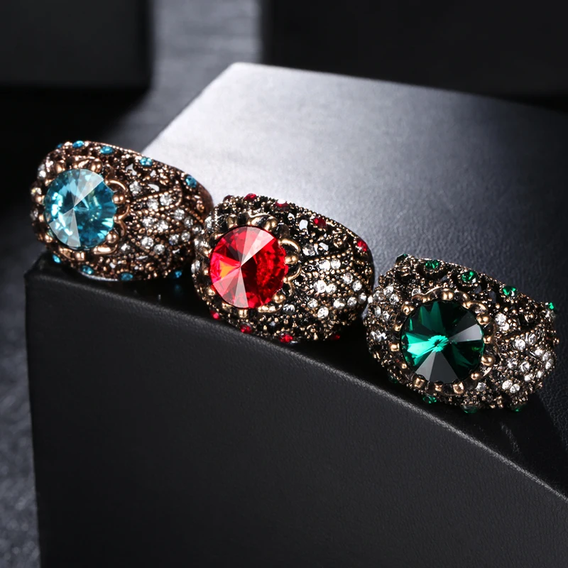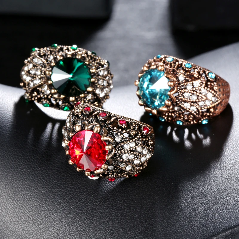 Wbmqda venda imperdível anéis vintage boêmia para mulheres cristal de strass ouro antigo anéis de casamento grandes joias boho tamanho americano 7/8/9/10 Tyle do item: anel Pedra principal: cristal Outra pedra: cristal Meterial: ouro antigo Ocasiões: namoro/festa/baile/presente/dia dos namorados