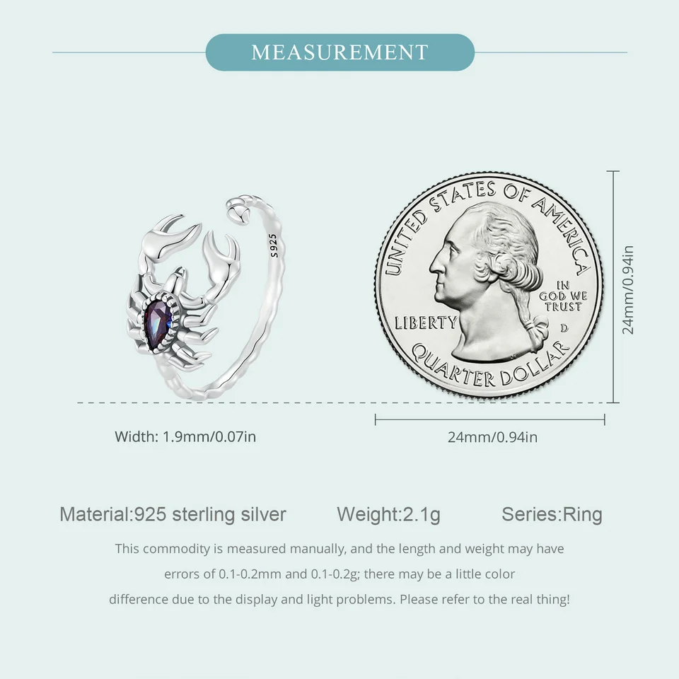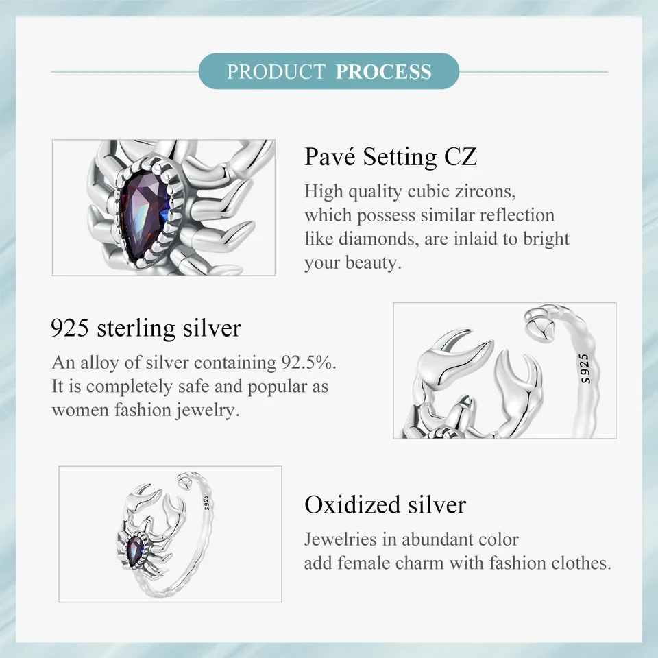 Número do Certificado: WOSTU 925 Sterling Silver Retro Scorpion Rings