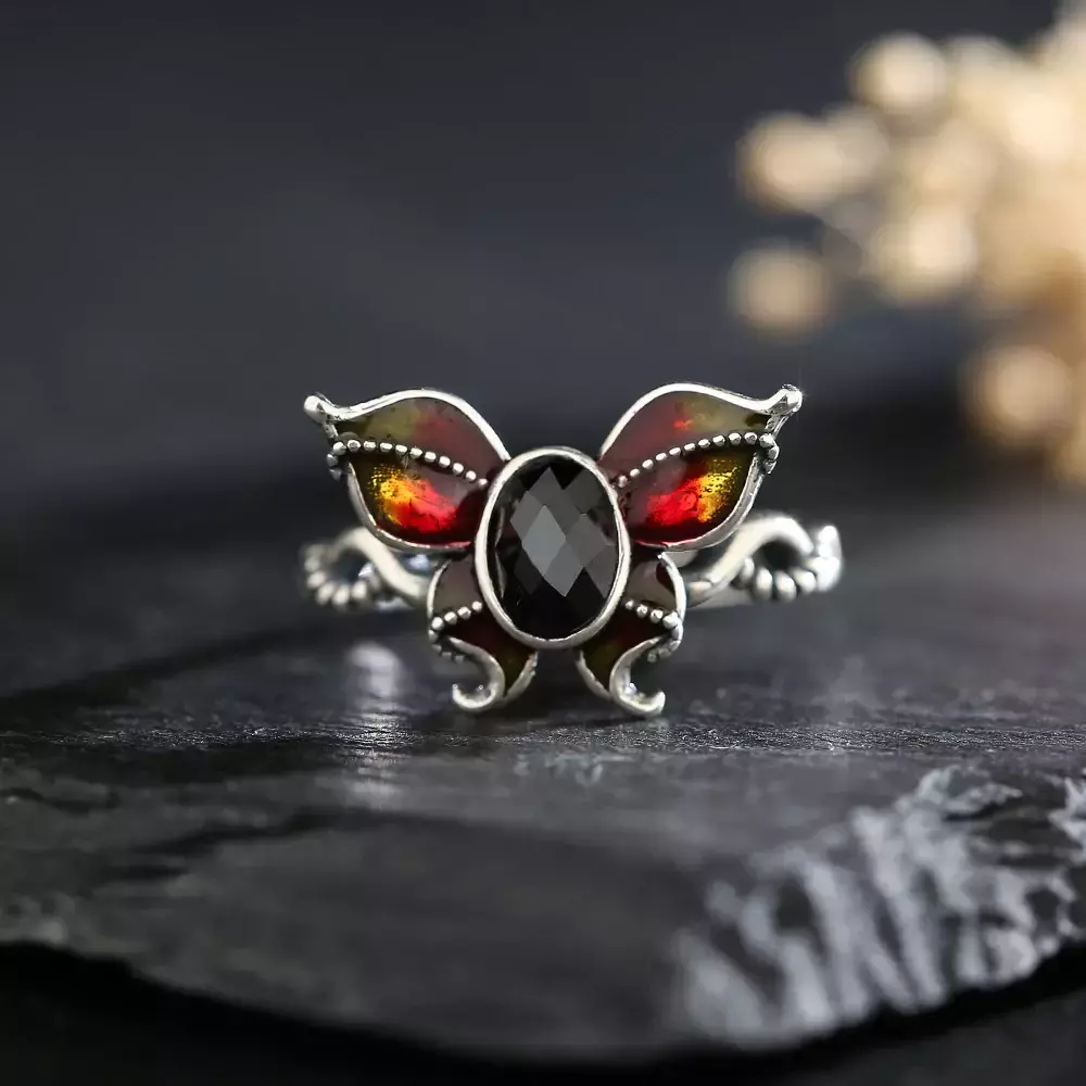 Feito em prata 925, um material reconhecido mundialmente por sua resistência, brilho e durabilidade, este anel vintage proporciona um acabamento impecável que destaca a cor profunda e vibrante da espinela natural, uma pedra preciosa que carrega a energia do equilíbrio e da proteção. Seu design com uma borboleta simboliza transformação, liberdade e renovação, trazendo um significado emocional que conecta você à sua essência.