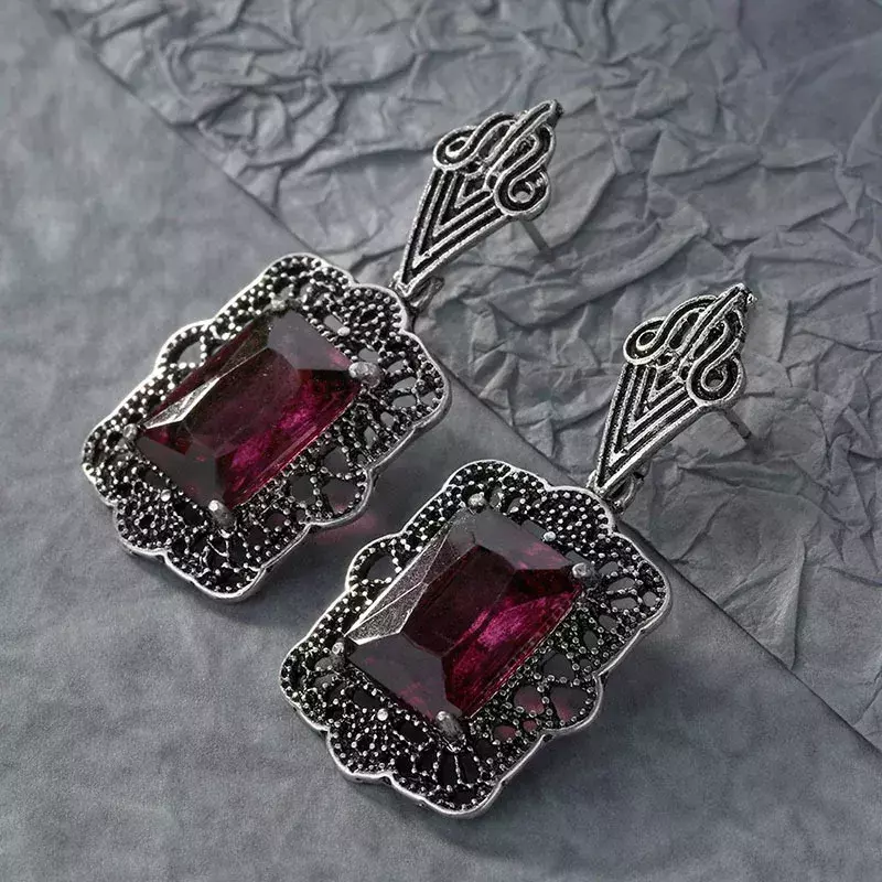 Com um design único, o destaque fica para a pedra principal na cor vermelho intenso, que capta a luz de maneira deslumbrante, revelando um brilho fascinante que ilumina o rosto e traz uma energia poderosa a quem os usa. A estrutura do brinco é em prata antiga, um tom que traz um ar clássico e refinado, ao mesmo tempo que combina com a modernidade da pedra vermelha, resultando em um visual equilibrado, que agrada a todos os gostos e estilos.