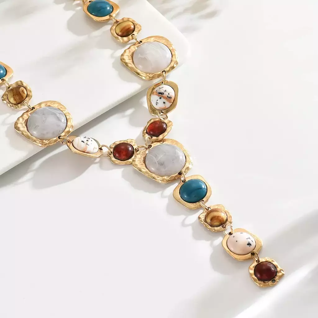Este colar impressiona pelo design em forma de Y, que valoriza o colo e acompanha a silhueta, trazendo uma sensação de leveza e modernidade ao seu visual. O pingente geométrico, robusto e elegante, é o destaque da peça, adicionando um toque de originalidade e ousadia. Inspirado no estilo boho exagerado, ele combina o melhor do vintage com uma pegada contemporânea, tornando-se um acessório indispensável para quem deseja expressar o seu estilo único.