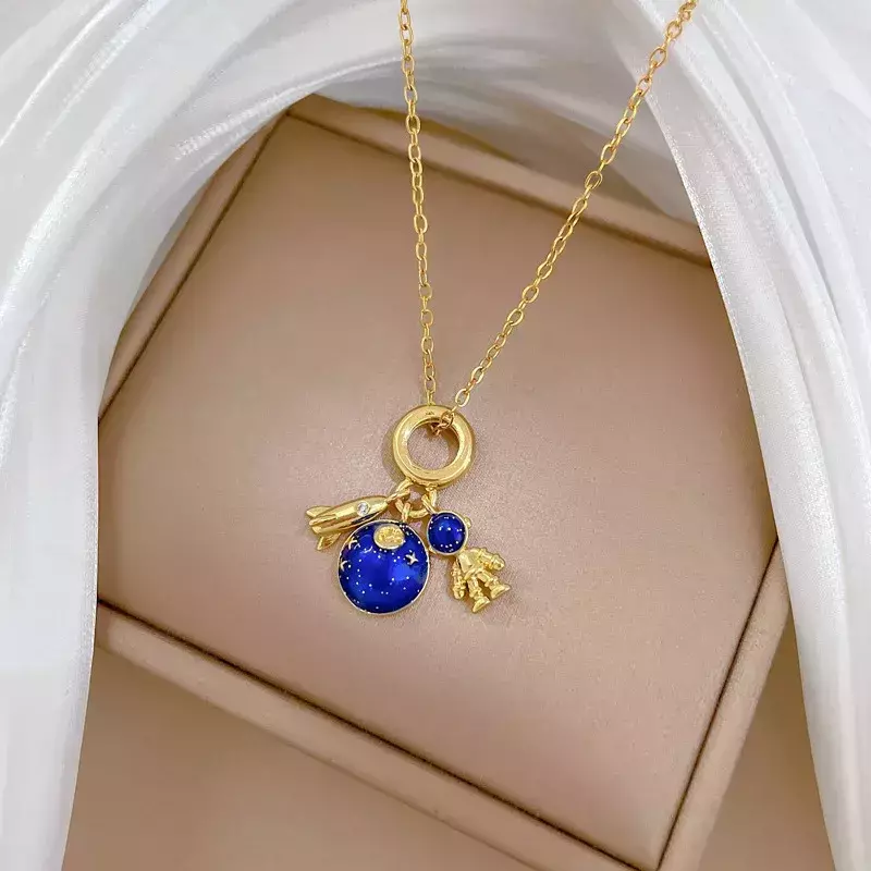 ✨ Colar Luz de Luxo Série Estrela – Planeta, Lua e Astronauta ✨