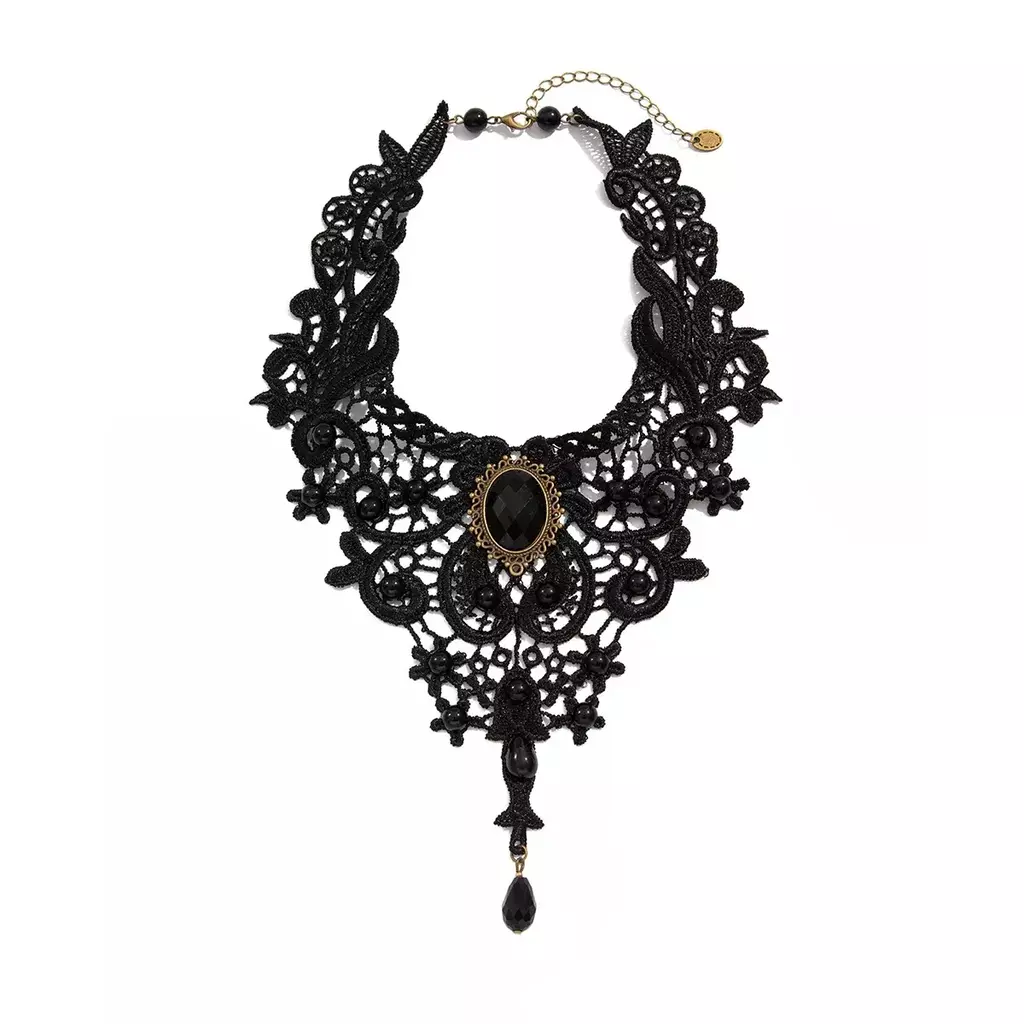 Moda nova joia vintage preto laço grânulo colar gótico steampunk estilo st montes colar gótico pingente