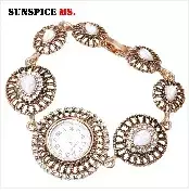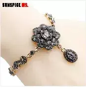 Com um diâmetro generoso de 58MM, ela se ajusta com conforto ao seu pulso, garantindo praticidade e elegância ao mesmo tempo. A combinação da cor dourada com o strass e a flor delicada em destaque cria um visual poderoso, que chama a atenção sem perder a sutileza. Esta pulseira é uma verdadeira celebração da arte árabe antiga, com influência em cada detalhe esculpido para transmitir luxo e exclusividade.