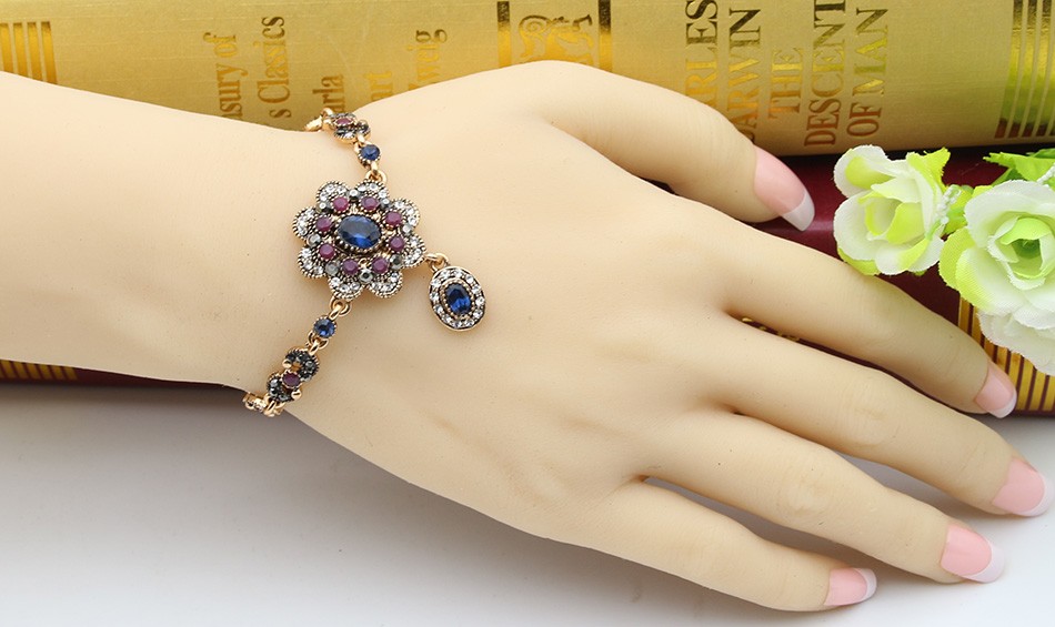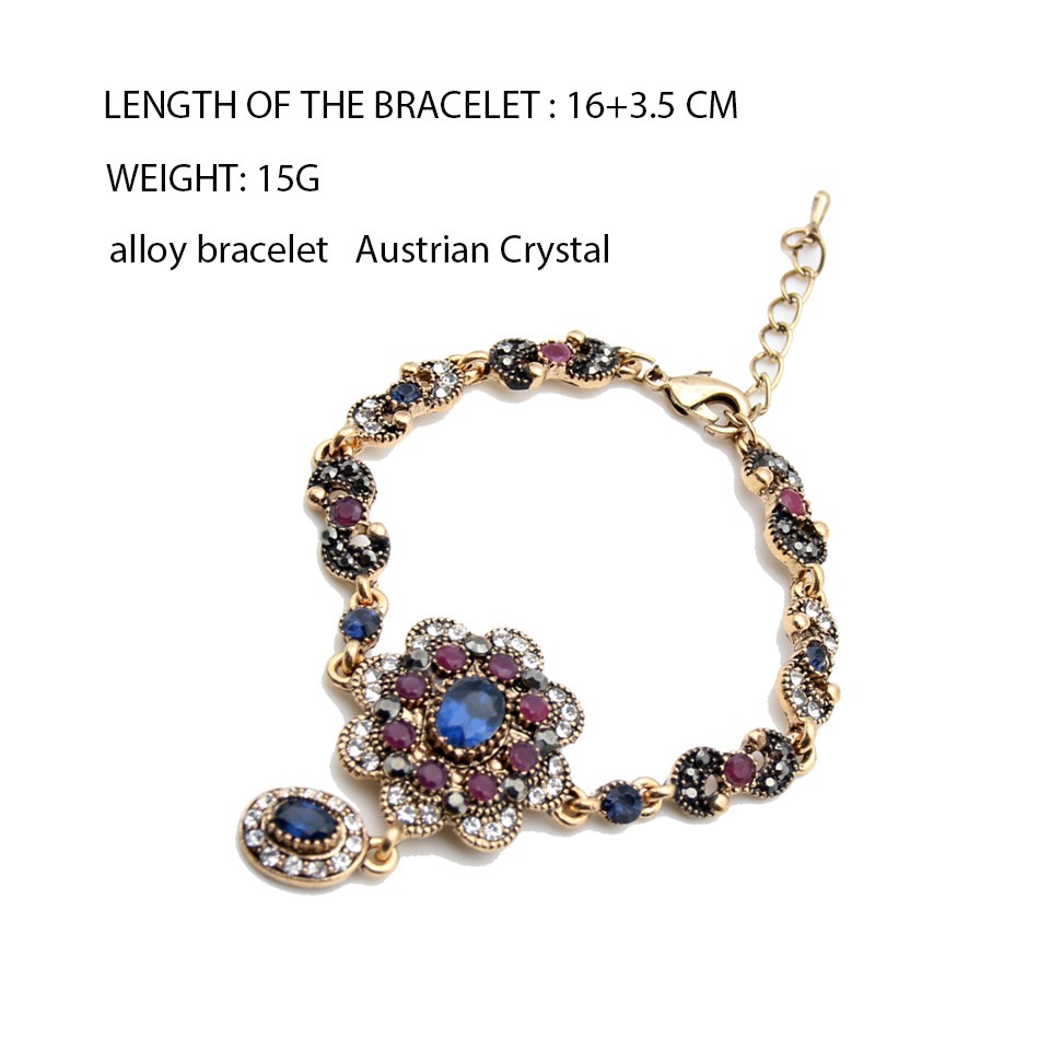 Feita com materiais de alta qualidade, a pulseira apresenta cristais deslumbrantes que capturam a luz de maneira única, trazendo um brilho encantador para seu pulso. Seu design vintage é cuidadosamente trabalhado para refletir a arte e a tradição da Índia, tornando esta peça uma joia perfeita para uso diário ou graças especiais.