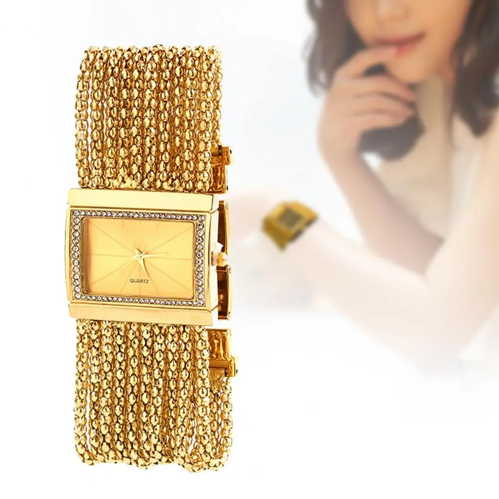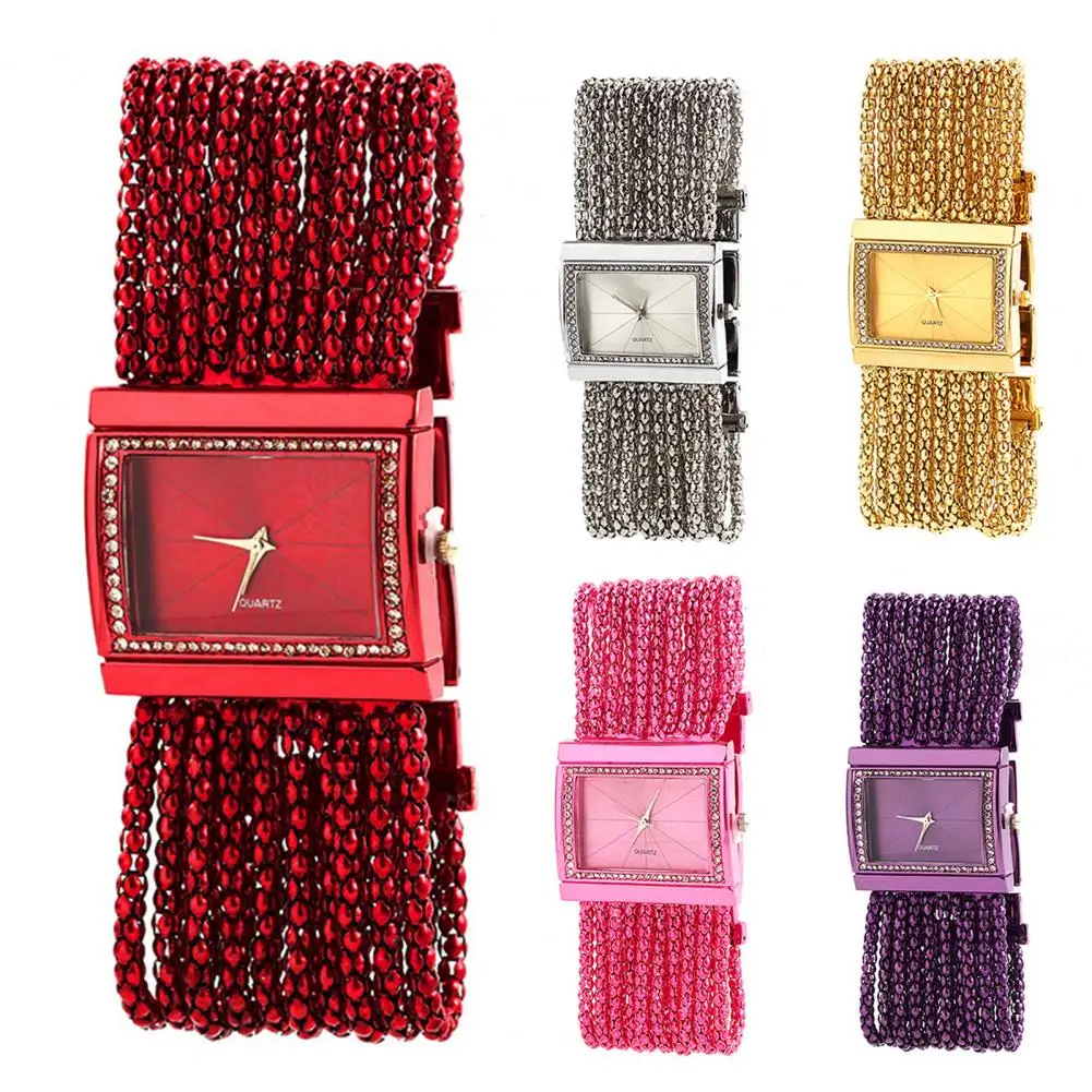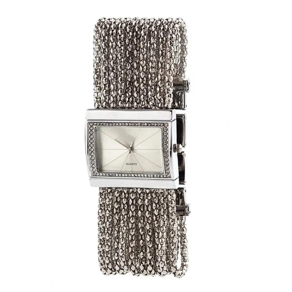 Pulseira com strass e design de corrente de contas multicamadas torna este relógio bonito e moderno de usar.