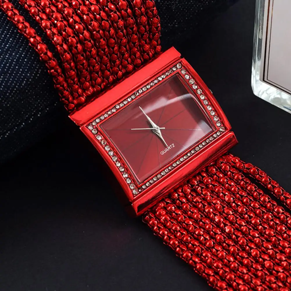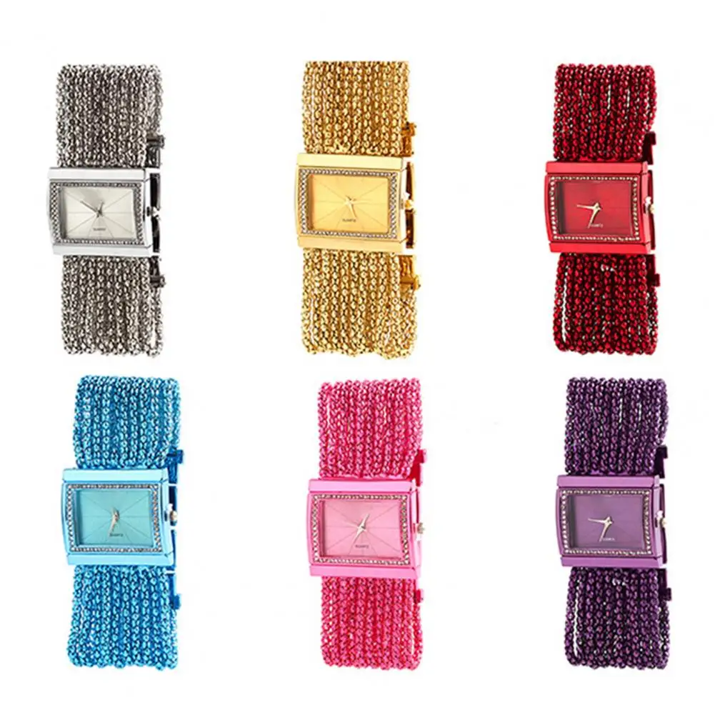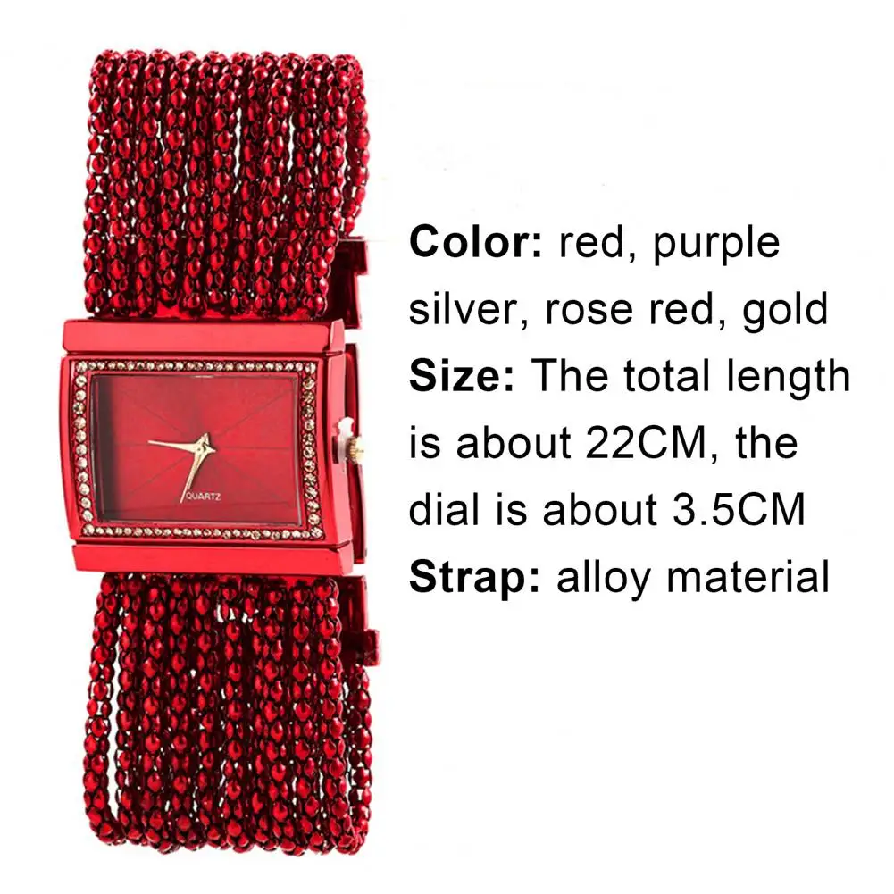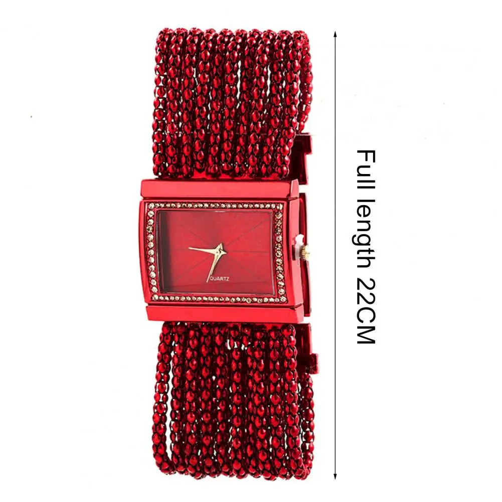 Pulseira com strass e design de corrente de contas multicamadas torna este relógio bonito e moderno de usar.