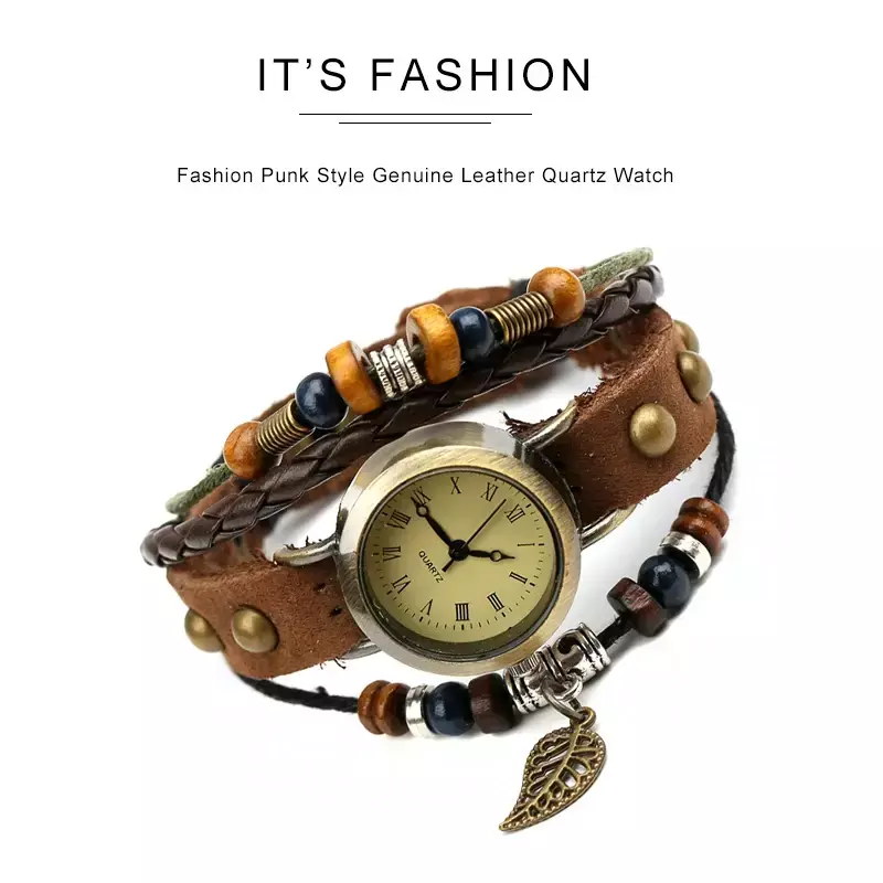 A pulseira de couro legítimo marrom garante um ajuste confortável e seguro no pulso, proporcionando uma experiência agradável mesmo após horas de uso contínuo. O couro é cuidadosamente selecionado para oferecer resistência e longevidade, mantendo o aspecto vintage mesmo com o uso frequente. Ideal para mulheres dinâmicas que não abrem mão do conforto e da praticidade no dia a dia, sem perder a classe.